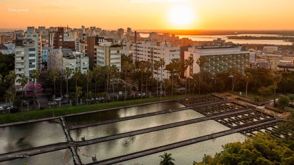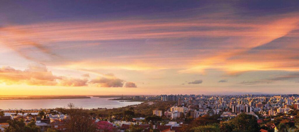 Ali estava Porto Alegre a partir de uma perspectiva sem igual, vista de cima. Os contornos dos prédios, as luzes da cidade, o Guaíba refletindo as cores do sol. Do outro lado, uma vegetação natural abundante.