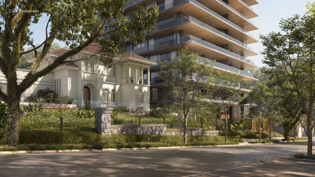 A relação entre o edifício e o entorno é marcada pelo respeito ao tradicional e às casas históricas cuidadosamente preservadas. As torres recuadas preservam a identidade do bairro, enquanto o projeto arquitetônico estabelece um diálogo equilibrado entre o moderno e o histórico.