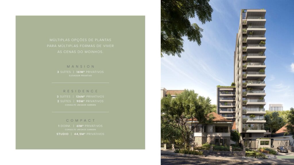 Começamos com a unidade Mansion e suas 3 suítes em 160m2, 2 vagas e elevador privativo e vista para o Leopoldina.