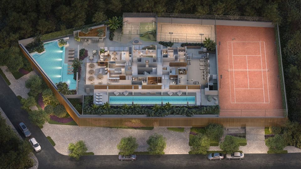 Sua infraestrutura de Petit Club contempla: Piscina Interna com Raia de 25m, Academia, Piscina Externa, Salão de Festas, Bar da Piscina, Espaço Gourmet, Quadra de Tênis Oficial de Saibro, Sauna Seca, Quadra de Beach Tennis & Futvôlei, Brinquedoteca, Mini Quadra Poliesportiva, Bicicletário, Playground, Sala de Massagem, Estar Externo, Sala de Reuniões, Espaço Pet, Mini Mercado e Guarda Volumes.